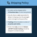 -Orders that only consist of stickers will NOT include tracking and will be shipped in a small envelope.