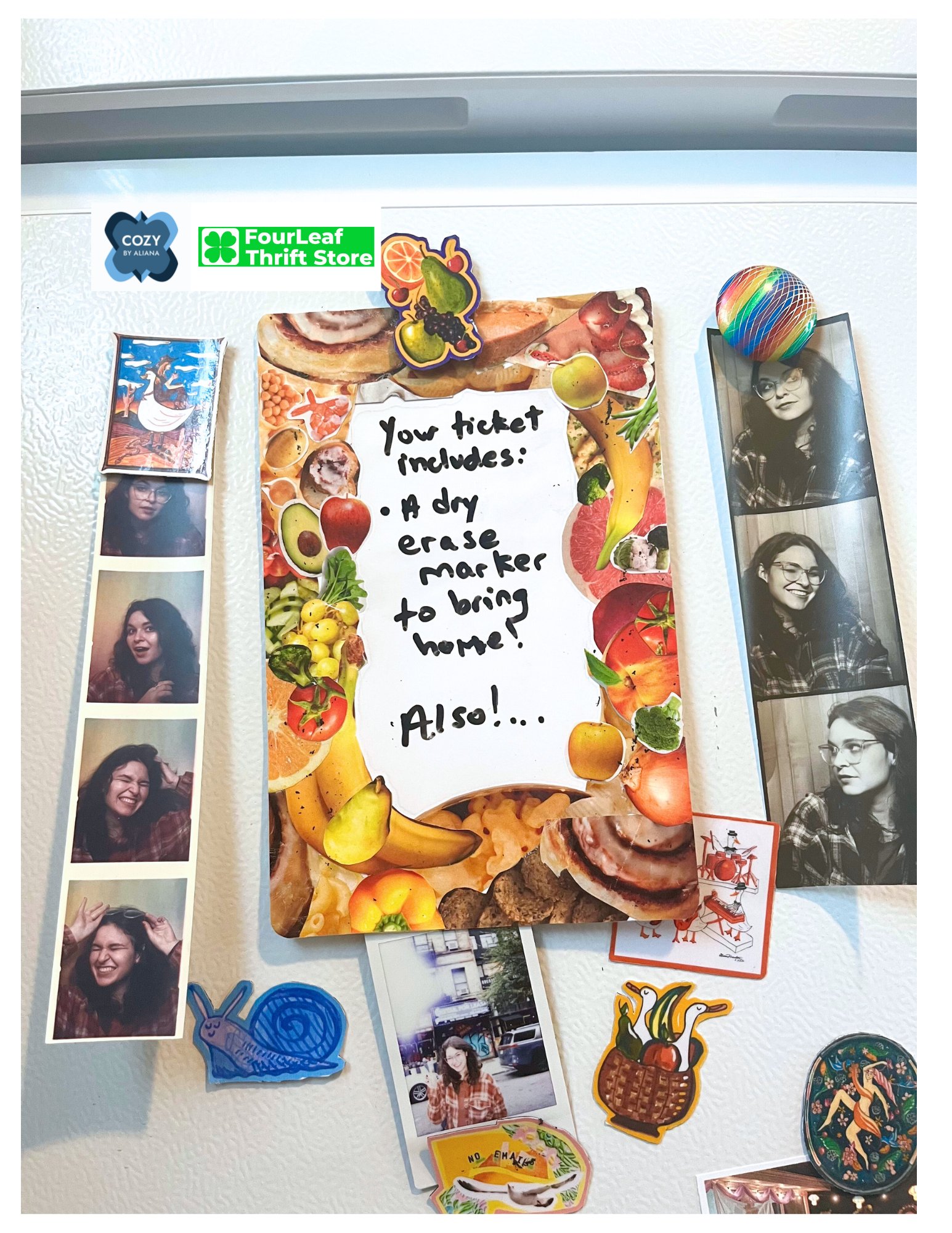 (I created my dry erase 'board' here by collaging a food-themed border πππ₯ and I hung it on my fridge so now I can write fast grocery lists! ππ )